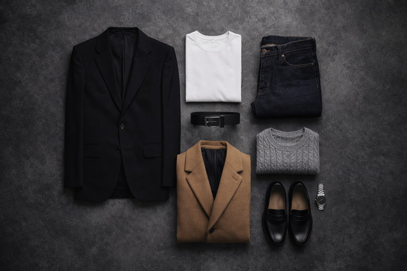 Bâtissez une garde-robe durable avec 7 essentiels bien coupés : blazer, jean brut, t-shirt premium, maille, chaussures sobres et manteau.
